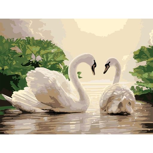 Картина по номерам на холсте Лебеди на тихом пруду, 40 30 см