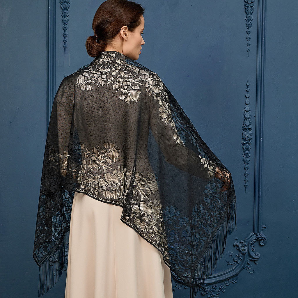 Палантин 170 х 60 см "Цветы и растения", цвет черный