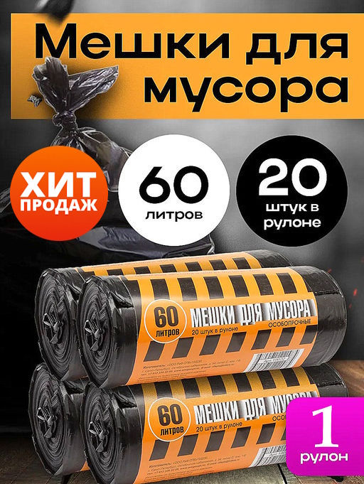 Мешки для мусора "Полосатики" 60л 27мкм ПВД (111) (19022) 1рул/20шт.