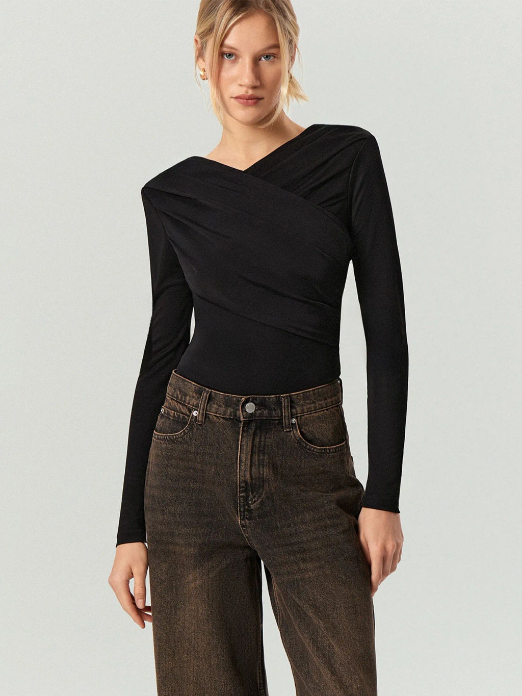 Лонгслив Emka с драпировкой и подплечниками вискоза черный