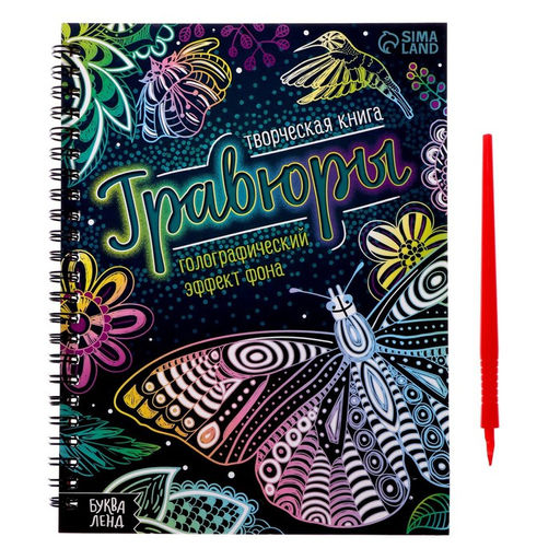 Творческая книга Гравюры. Красный фон с голографией, 14 стр.