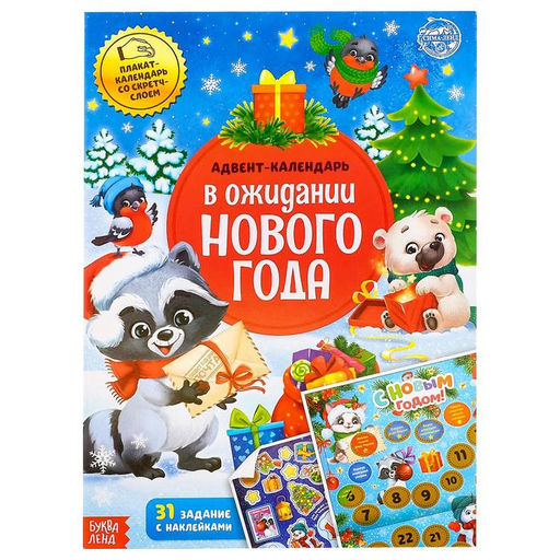 Книжка с наклейками "Адвент-календарь. В ожидании нового года", 24 стр., формат А4, со стирающимся слоем