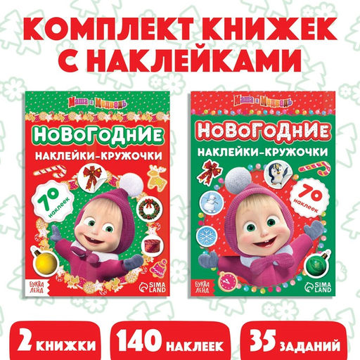 Набор книжек с наклейками Новогодние наклейки-кружочки, 2 шт. по 16 стр., А5, Маша и Медведь