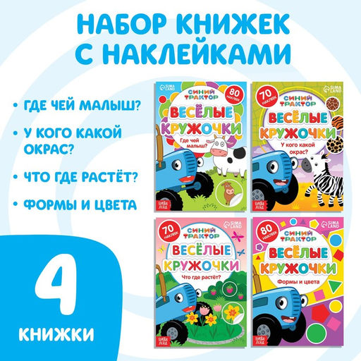 Набор книг с наклейками Весёлые кружочки, 4 шт. по 16 стр., А5, Синий трактор