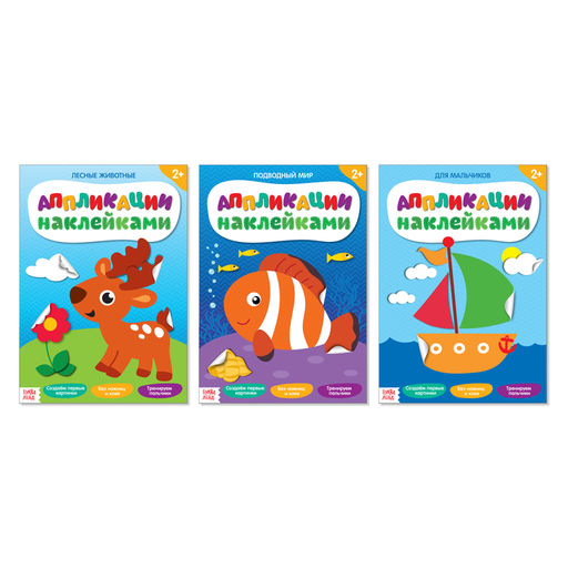 Аппликации наклейками набор Для мальчиков, 3 шт. по 12 стр.