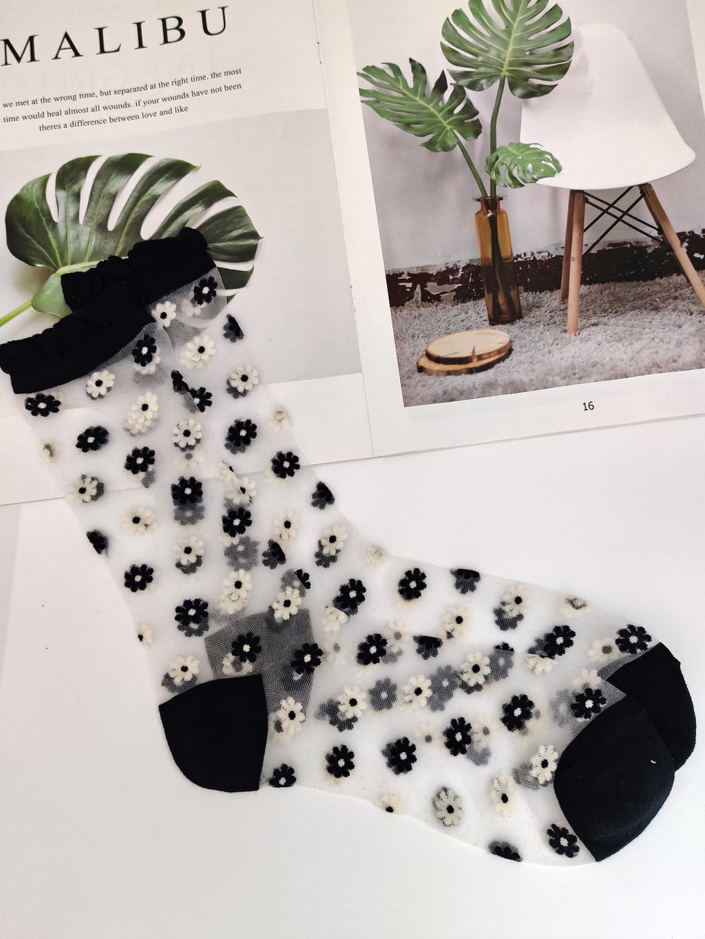 Носки Прозрачные р.35-40 "Ромашки" Черные