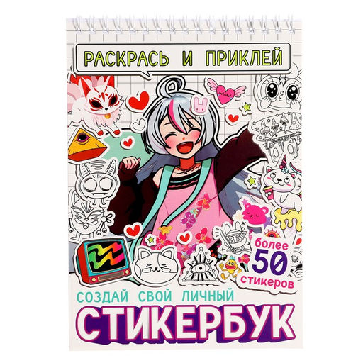 Стикербук Раскрась и приклей.Твой персональный стикербук, 20 стр., А5, Аниме