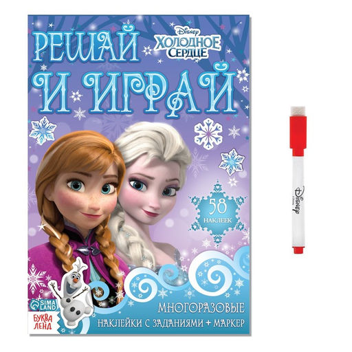 Набор: Книга-раскладушка + многоразовые наклейки + маркер Холодное сердце. Задания, 17 24 см, Дисней