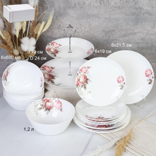 Столовый набор 20 предметов Евро с этажеркой / 19/FLYGP8575672 (20032) /уп 2/ Чайная роза
