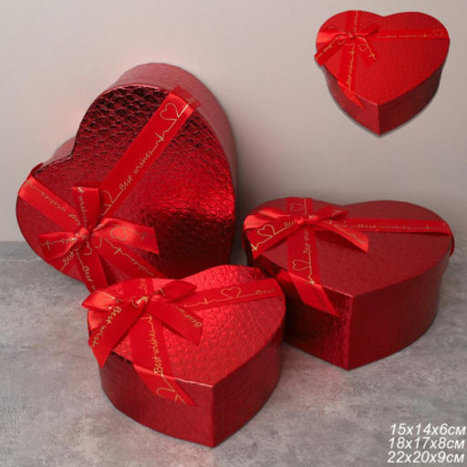 Коробка подарочная Сердце 3 штуки 22х20х9 см / 3405-01 /уп 36/красная