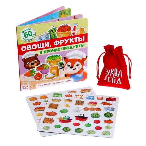 Магнитная книжка-игрушка Овощи, фрукты и прочие продукты, 8 стр.