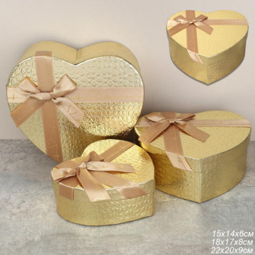 Коробка подарочная Сердце 3 штуки 22х20х9 см / 3405-02 /уп 36/золото