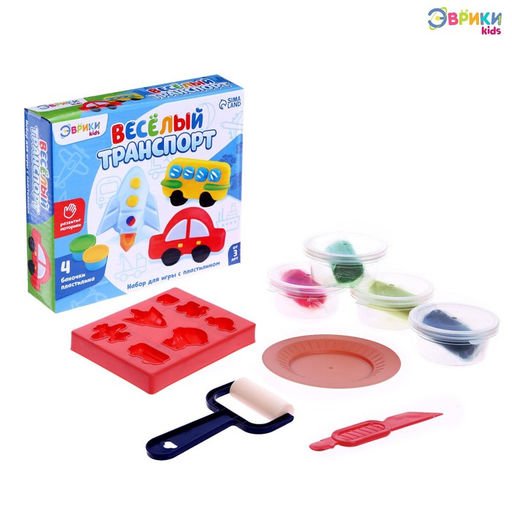 Набор для игры с пластилином Весёлый транспорт, 4 баночки с пластилином