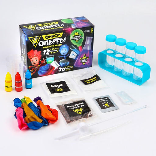 Набор для опытов Фиксики Фикси опыты. Большой набор, 12 опытов, Файер и Нолик