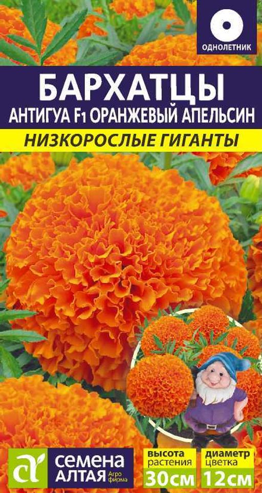 Артикул: Цветы Бархатцы Антигуа Оранжевый апельсин/Сем Алт/цп 5 шт. Низкорослые гиганты