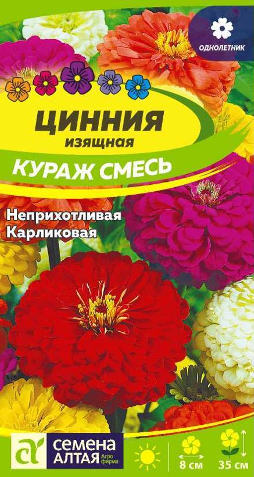 Артикул: Цветы Цинния Кураж смесь карликовая/Сем Алт/цп 0,3 гр.