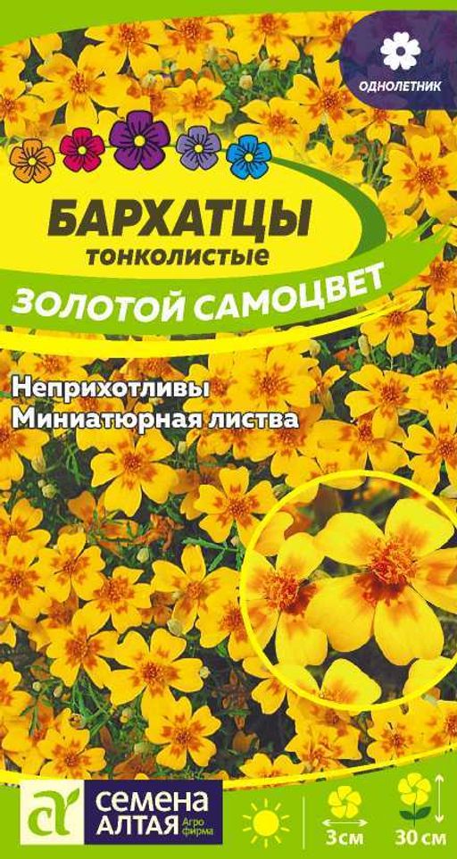 Артикул: Цветы Бархатцы Золотой Самоцвет тонколистн./Сем Алт/цп 0,1 гр.