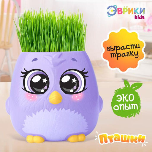 Набор для опытов Пташки, выращиваем травку, фиолетовый горшочек