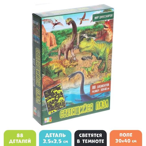 Пазлы светящиеся Мир динозавров, 88 деталей