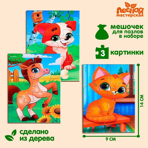 Пазлы Домашние животные, 3 штуки