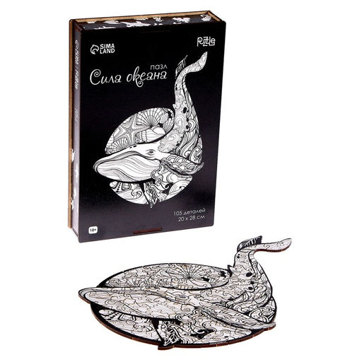 Пазл деревянный фигурный Сила океана, чёрно-белый