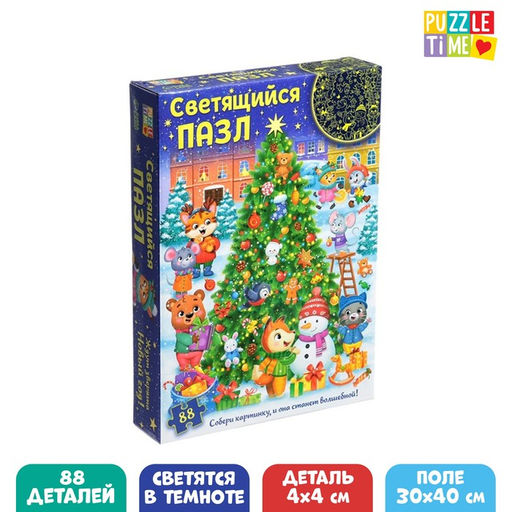 Пазл светящийся Ждут зверята Новый год, 88 деталей