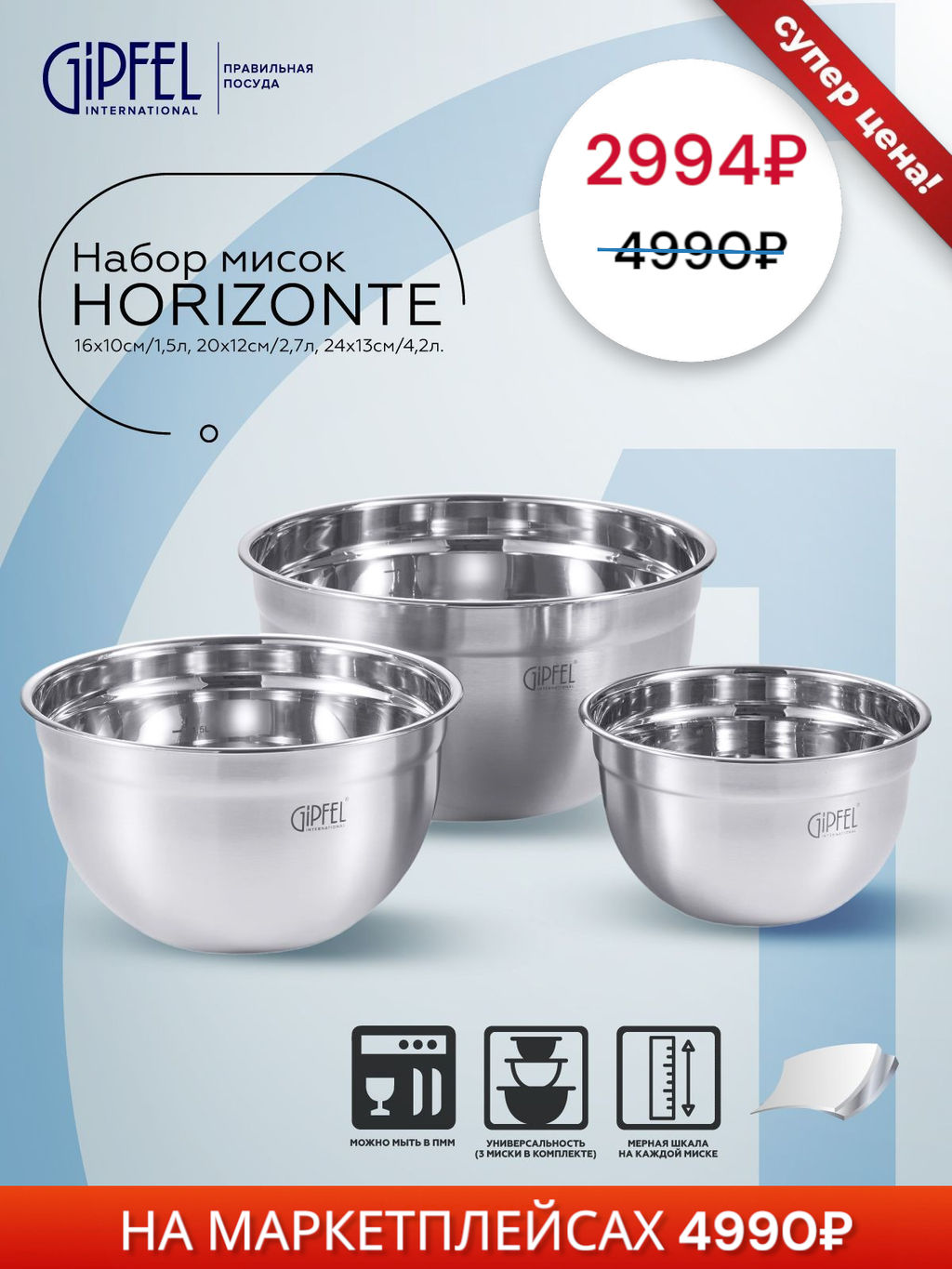 51159 GIPFEL Набор мисок HORIZONTE 16х10см/1,5л, 20х12см/2,7л, 24х13см/4,2л. Мат