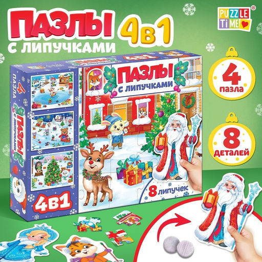 Пазлы 4 в 1 Новогодние забавы, с липучками
