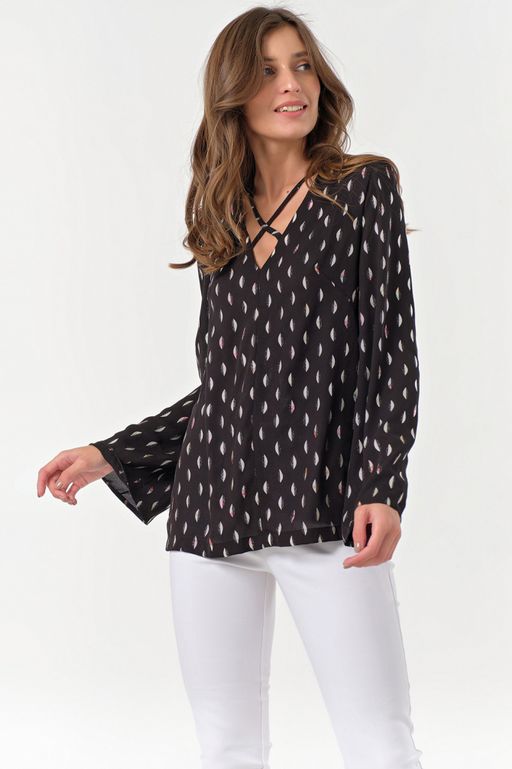 Блузка шифоновая свободная с принтом на черном