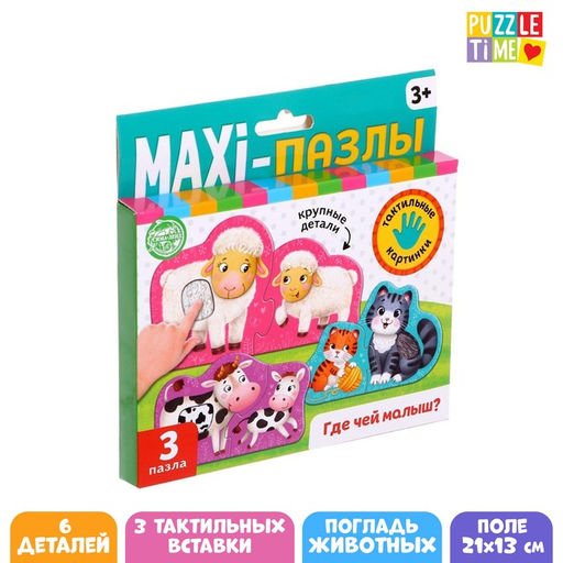 Макси пазлы с тактильными вставками Где чей малыш?