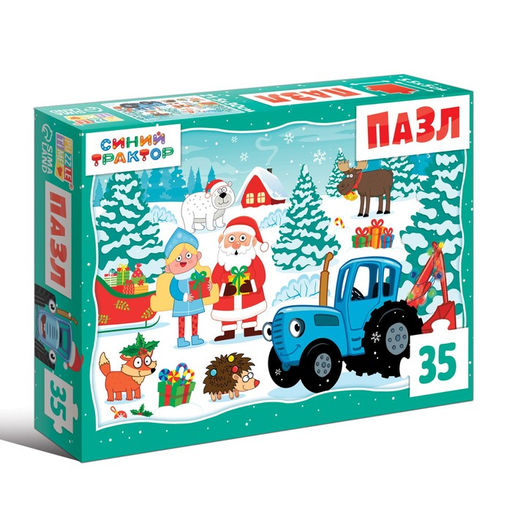 Пазл Синий трактор. Новогодний подарок, 35 элементов