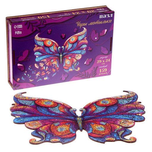 Пазл деревянный фигурный Чары мотылька, деревянная коробка