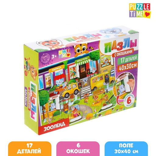 Пазлы с окошками Зооленд, 17 деталей