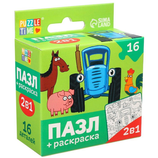 Пазл-раскраска 2 в 1 Синий трактор на ферме