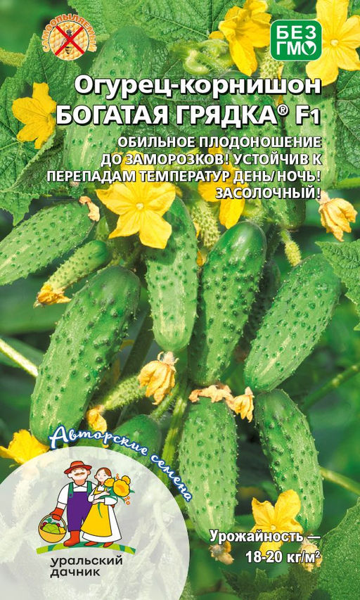 Огурец БОГАТАЯ ГРЯДКА F1 Обильное плодоношение до заморозков! Устойчив к перепадам температур! Засолочный!