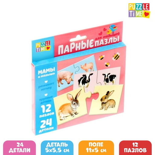 Парные пазлы Мамы и малыши, 24 детали