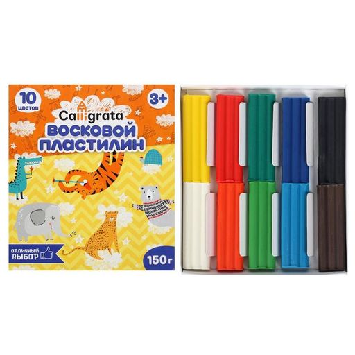 Пластилин мягкий (восковой) Calligrata, 10 цветов, 150 г