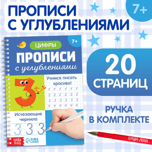 Прописи с углублениями Цифры. Учимся писать красиво!