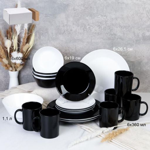 Столовый набор 25 предметов Черно-белый с кружками / NN19-1T-BW/B-MK360 /уп 2/4/ большая обеденная тарелка