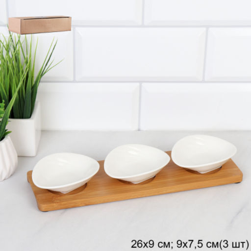 Соусник 3 штуки 26 см / WS-63 /уп 12/ деревянная подставка