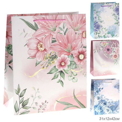 Цена за 12 шт. Пакет подарочный 31x42x12см Цветы / 3251XL /уп 12/300/