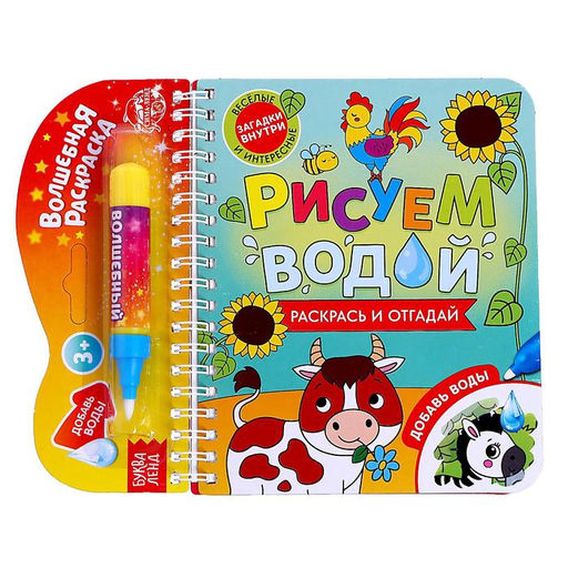 Книжка-раскраска многоразовая Рисуем водой. Раскрась и отгадай, 10 стр.