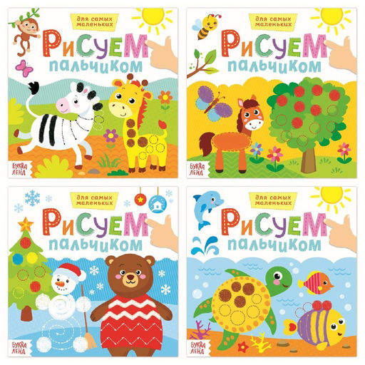 Раскраски набор Рисуем пальчиками с подсказками, 4 шт. по 16 стр.