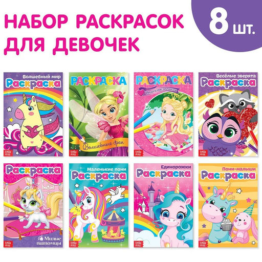 Раскраски для девочек набор Для маленьких принцесс, 8 шт. по 12 стр.