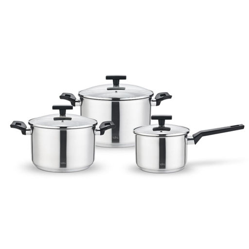 Набор посуды Веста LR02-133 3 предмета (кастр 3,9+5,1 сотейн 2,1л) индукц 5-ти ступ. капс. дно /LARA/