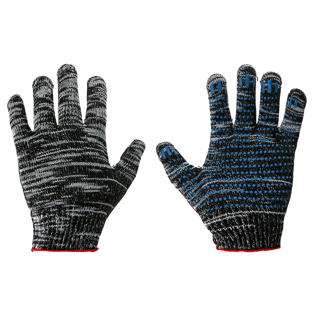 Перчатки хлопчатобумажные с ПВХ (точка), 5 нитей, 10 класс, 50гр плотность вязки, графит (Россия)