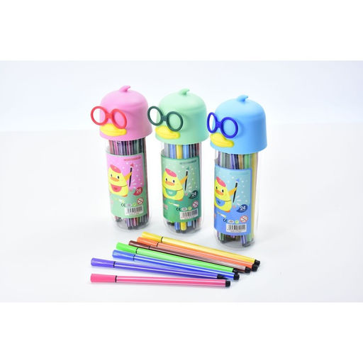 Фломастеры 24 цветов, в пластиковом пенале, Утка в очках МИКС