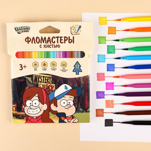Фломастеры с кистью, 12 цветов, Гравити Фолз