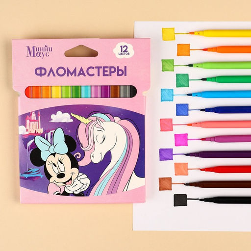 Фломастеры "Минни и Единорог", 12 цветов, вентилируемый колпачок