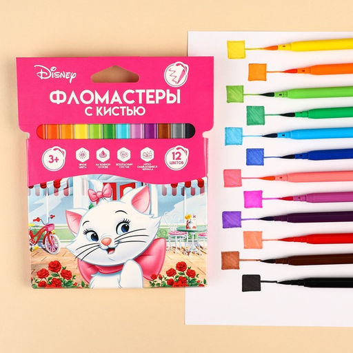 Фломастеры с кистью, 12 цветов, Коты аристократы